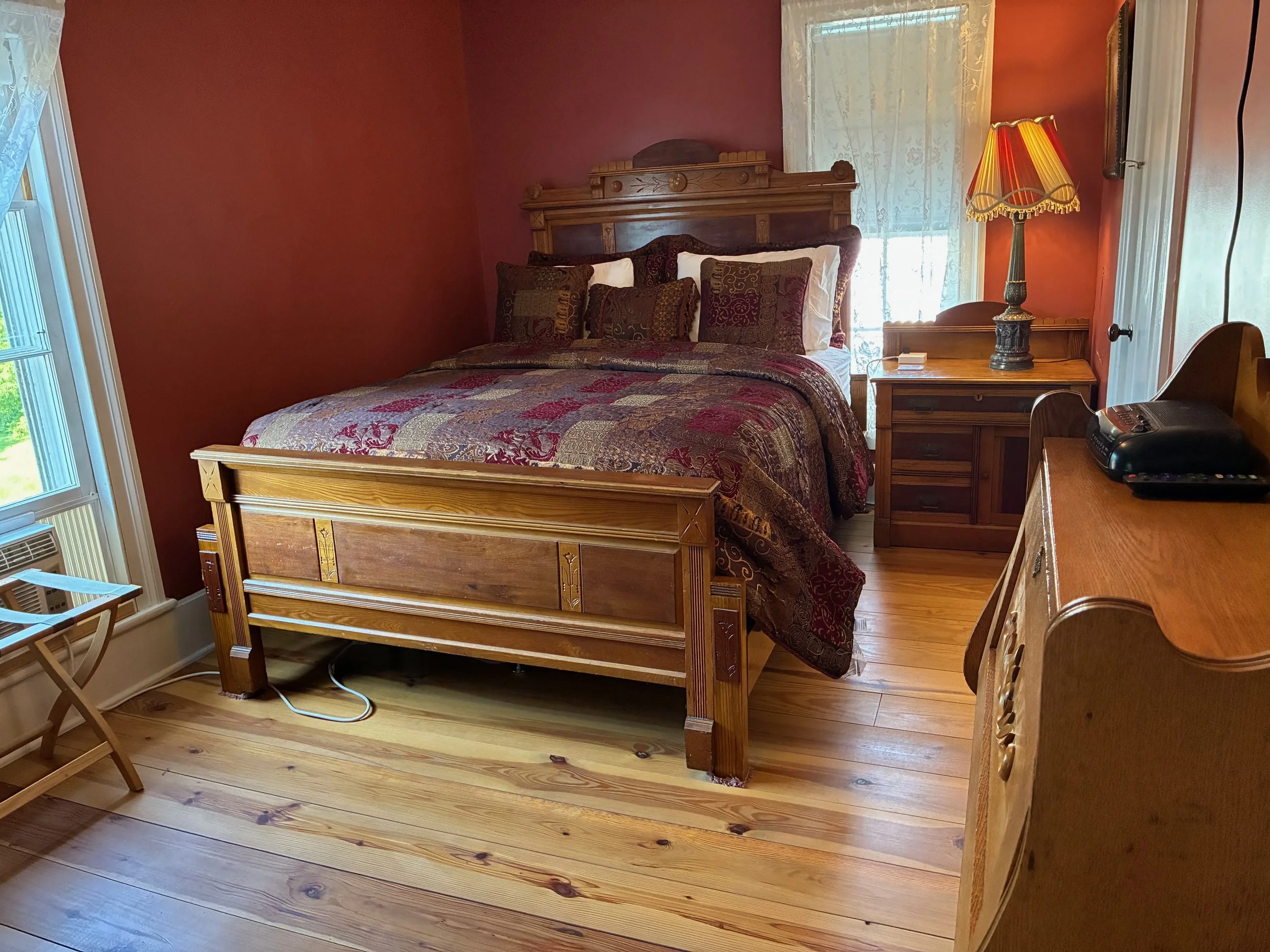 Named after Peggy Persson who lived in the room while growing up in the 1970s. Peggy helped in providing many details in the restoration of the Inn since her family lived in it after the last of the Maxfields left. Peggy’s Room is a small space which has a queen-sized bed and a private bathroom. 2 guests maximum.